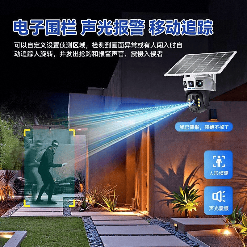 全方位监控保障:具备双镜头联动能力,确保360度无死角监控,消除任何盲区。无论是家中巷陌还是后院角落,实时监控让你安心不已。该设备可轻松适应各种环境,无需担心视角限制,实现无缝覆盖,让每一个细节尽收眼底。