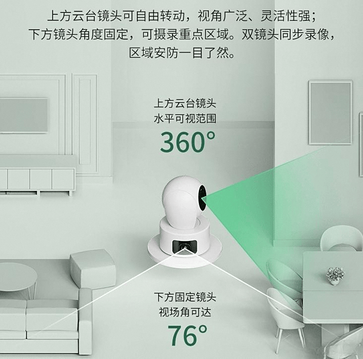 超广角双镜头设计:一个摄像头即可实现三台设备的监控范围,帮助您节省成本和安装麻烦。无论是居家安防还是商铺监控,都能充分满足不同场景的需求,做到全方位守护。通过简化安装过程,用户可以更快地享受高效的监控体验,让安全无处不在。而且,宽阔的视野确保重要细节不会被遗漏。
